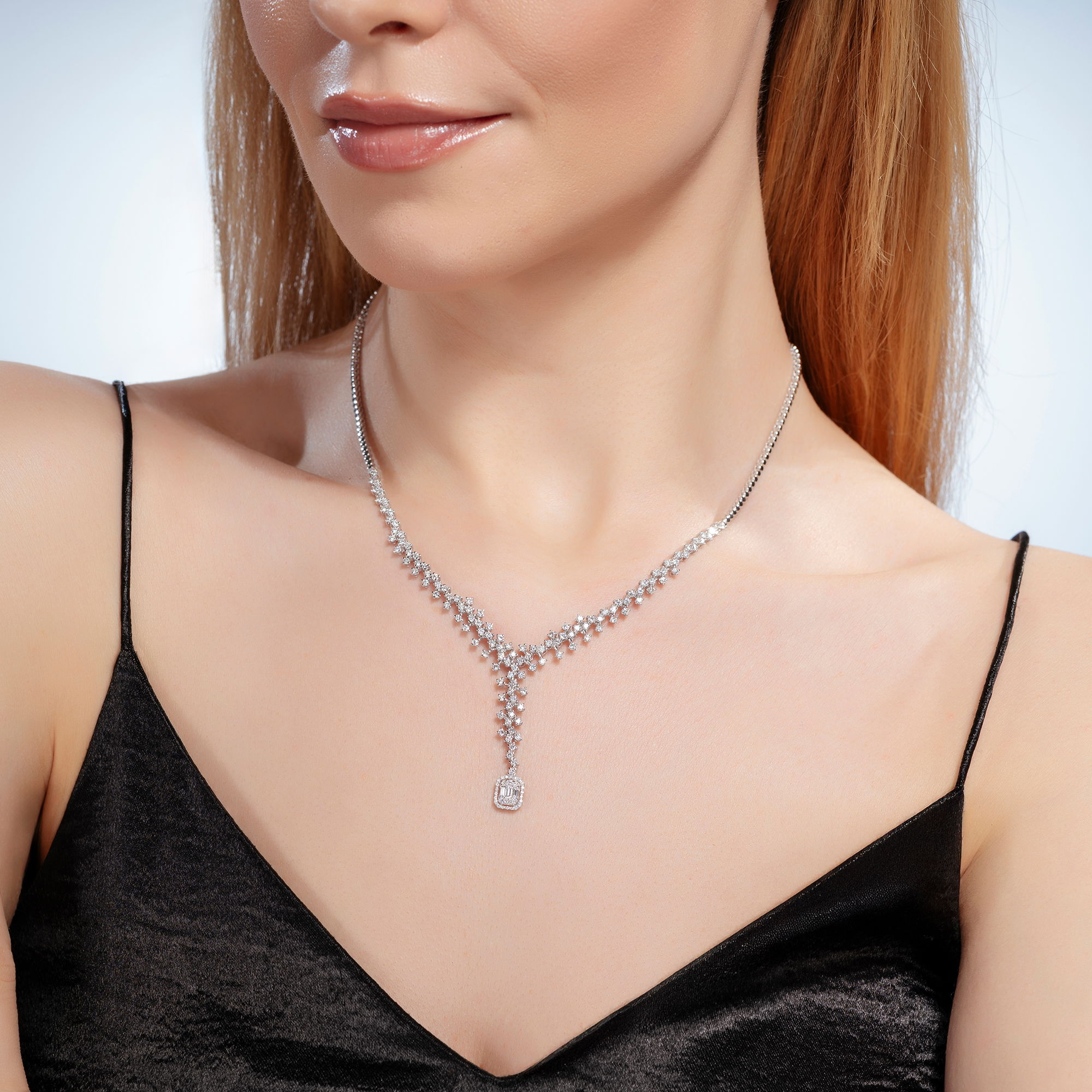 3,13 Karat Pırlantalı Baget Gerdanlık - Yaklaşık 18,57gr. 14 Ayar Beyaz Altın