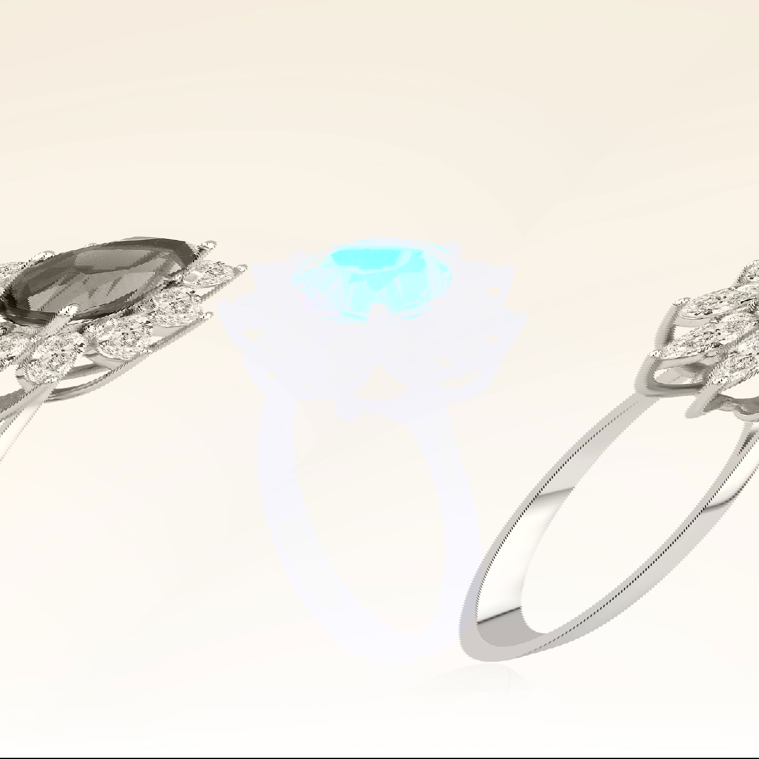 Üründe F renk SI berraklığında damla kesim topaz ve pırlanta taşlar kullanılmaktadır. Parlaklığı ve netliğiyle dikkat çeken bu taşlar, zarif bir görünüm sunar. Altın ağırlığı, seçilen yüzük ölçüsüne göre farklılık gösterebilir.