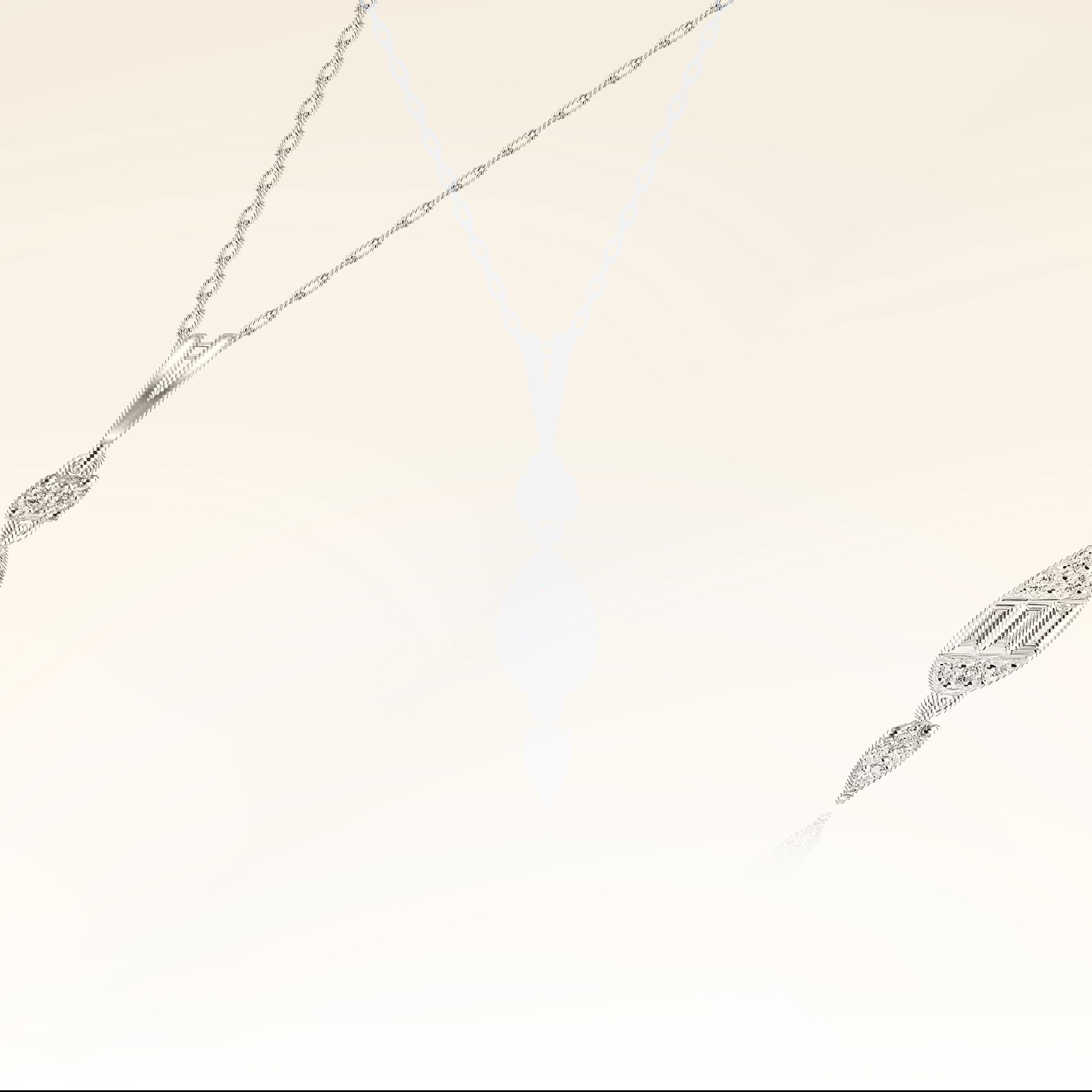 Üründe G renk SI berraklığında baget ve yuvarlak kesim pırlanta taşlar kullanılmaktadır. Parlaklığı ve netliğiyle dikkat çeken bu taşlar, zarif bir görünüm sunar. Pırlanta kolye, 42,5 cm standart zincir uzunluğu ile üretilmiştir.