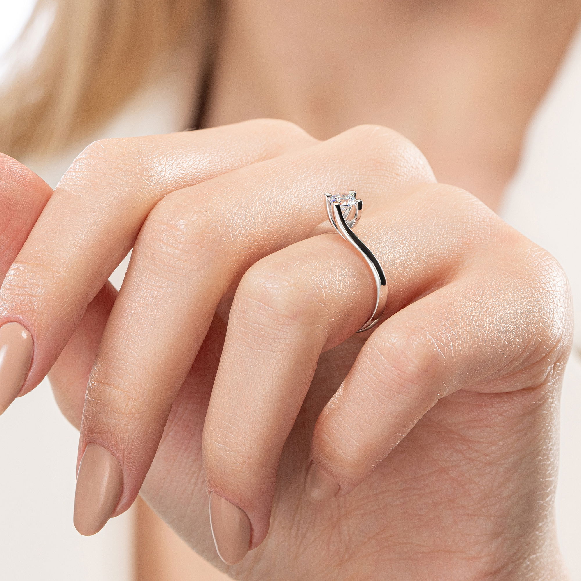 Üründe D renk SI2 berraklığında yuvarlak kesim pırlanta taşlar kullanılmaktadır. Parlaklığı ve netliğiyle dikkat çeken bu taşlar, zarif bir görünüm sunar. Altın ağırlığı, seçilen yüzük ölçüsüne göre farklılık gösterebilir.