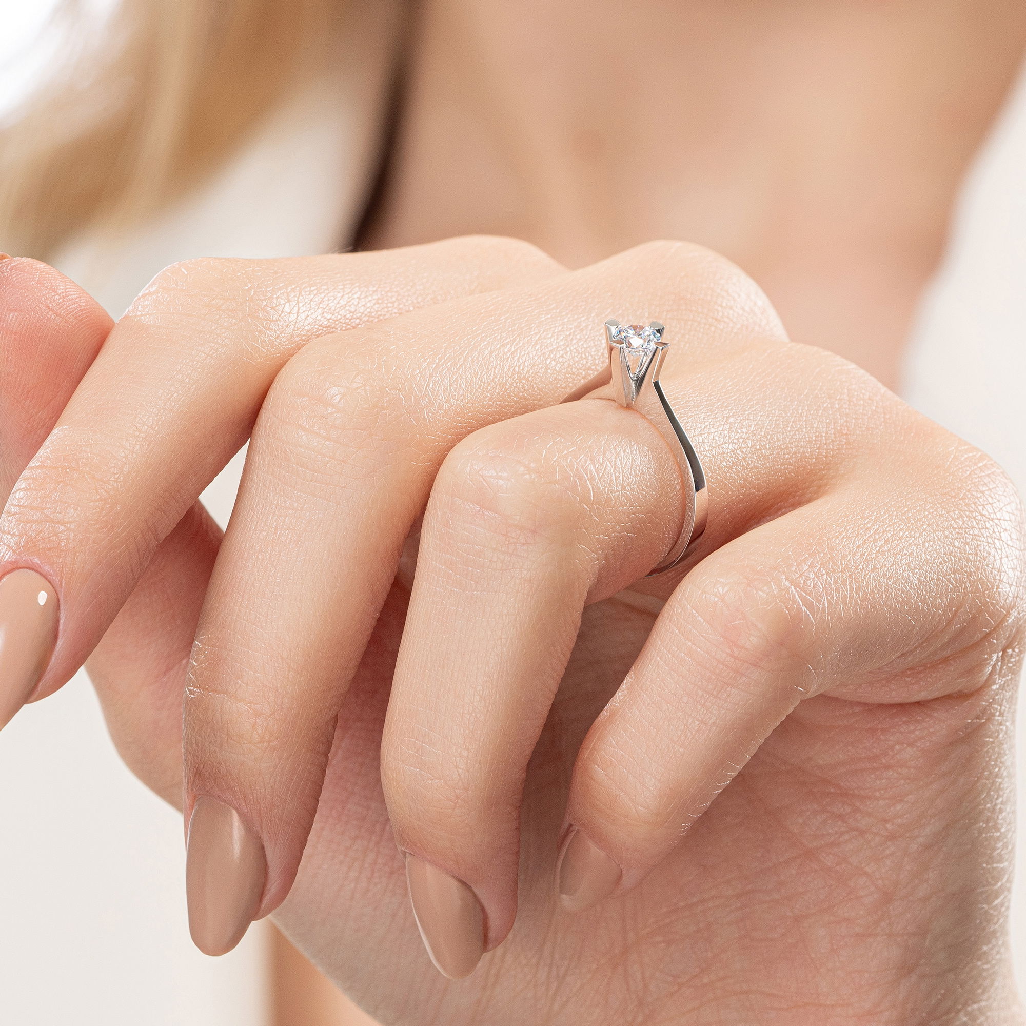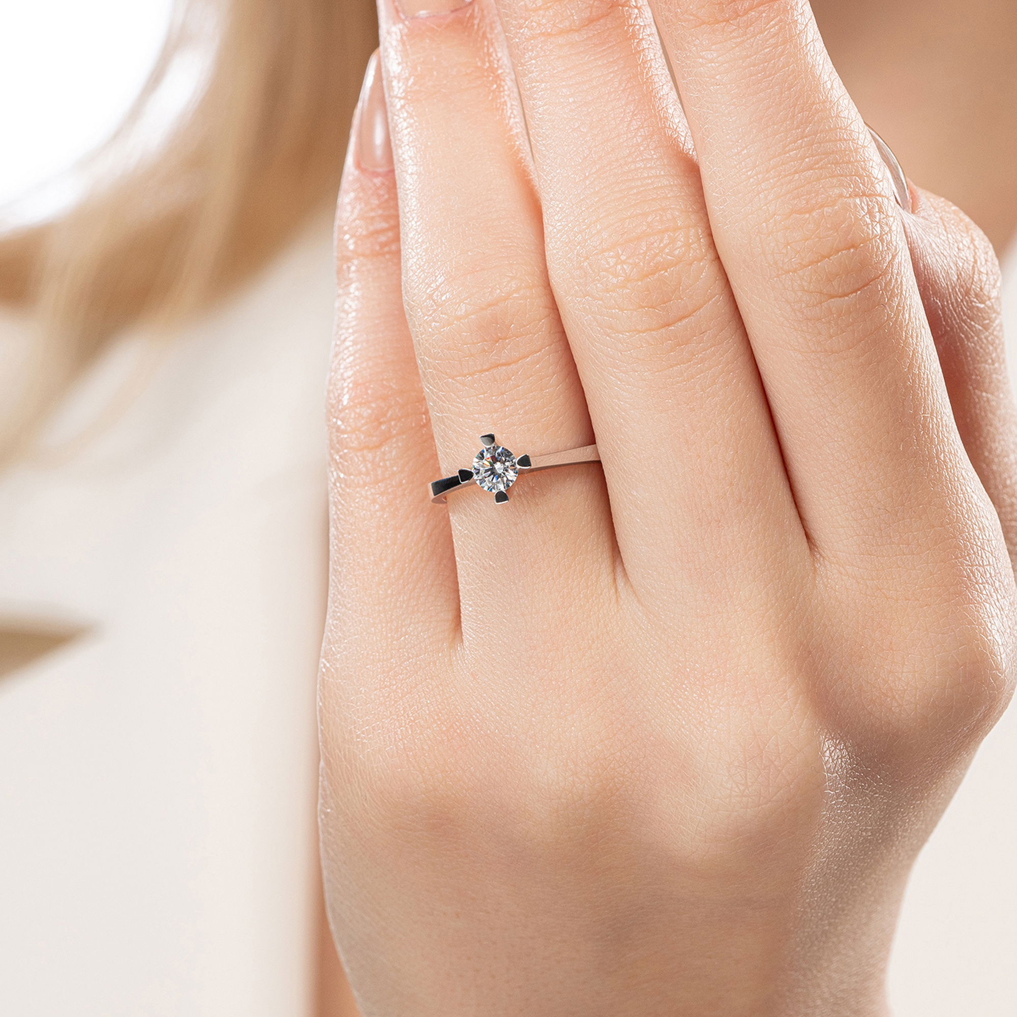 Üründe D renk SI2 berraklığında yuvarlak kesim pırlanta taşlar kullanılmaktadır. Parlaklığı ve netliğiyle dikkat çeken bu taşlar, zarif bir görünüm sunar. Altın ağırlığı, seçilen yüzük ölçüsüne göre farklılık gösterebilir.