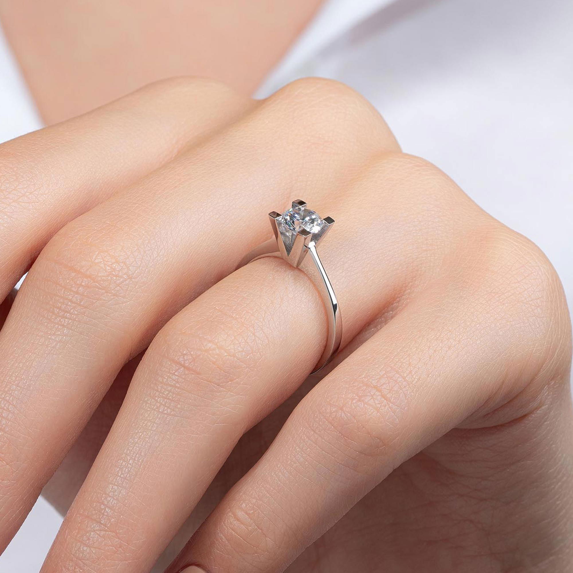 E Renk 0,90 Karat HRD Sertifikalı Tektaş Pırlanta Yüzük - Yaklaşık 3,41gr. 14 Ayar Beyaz Altın