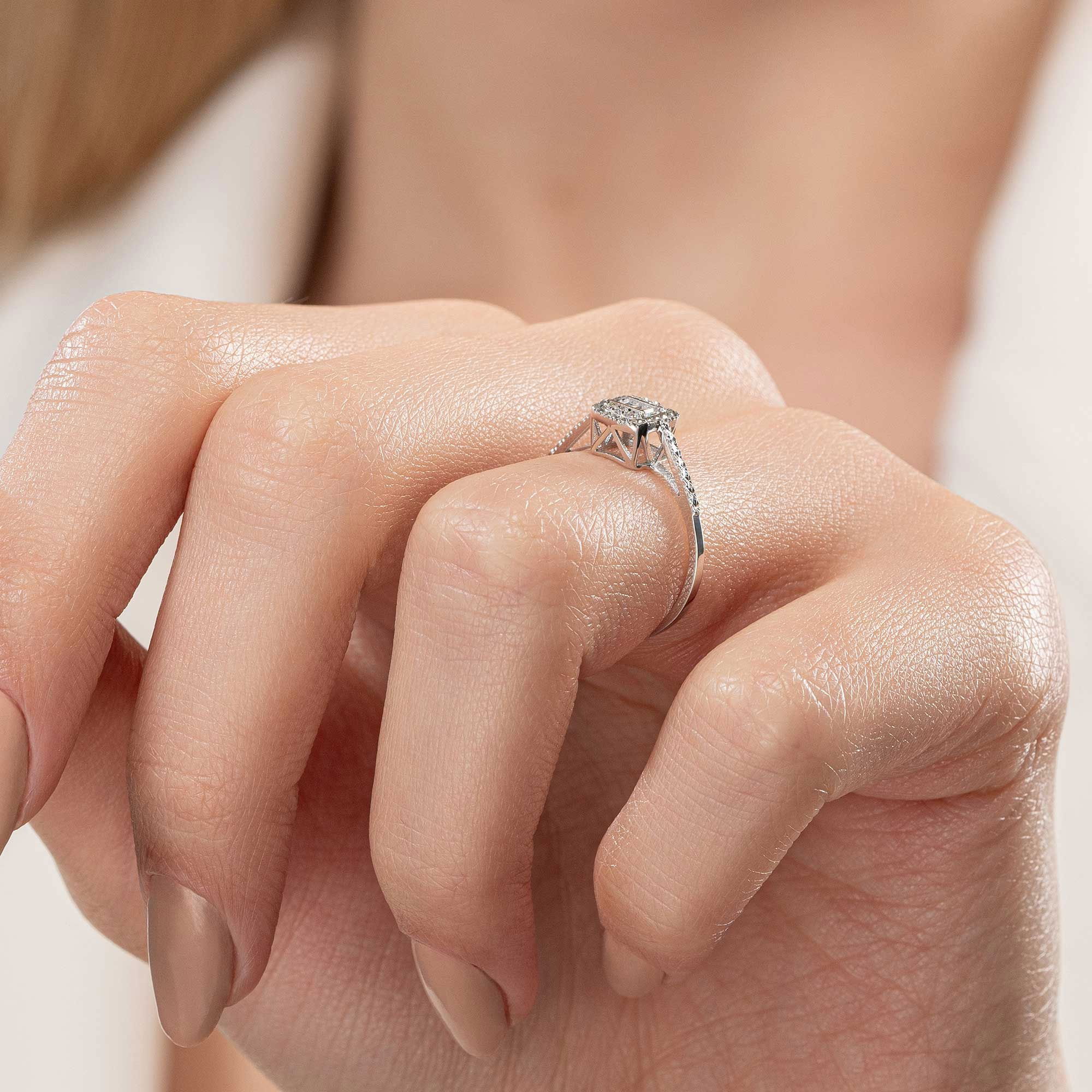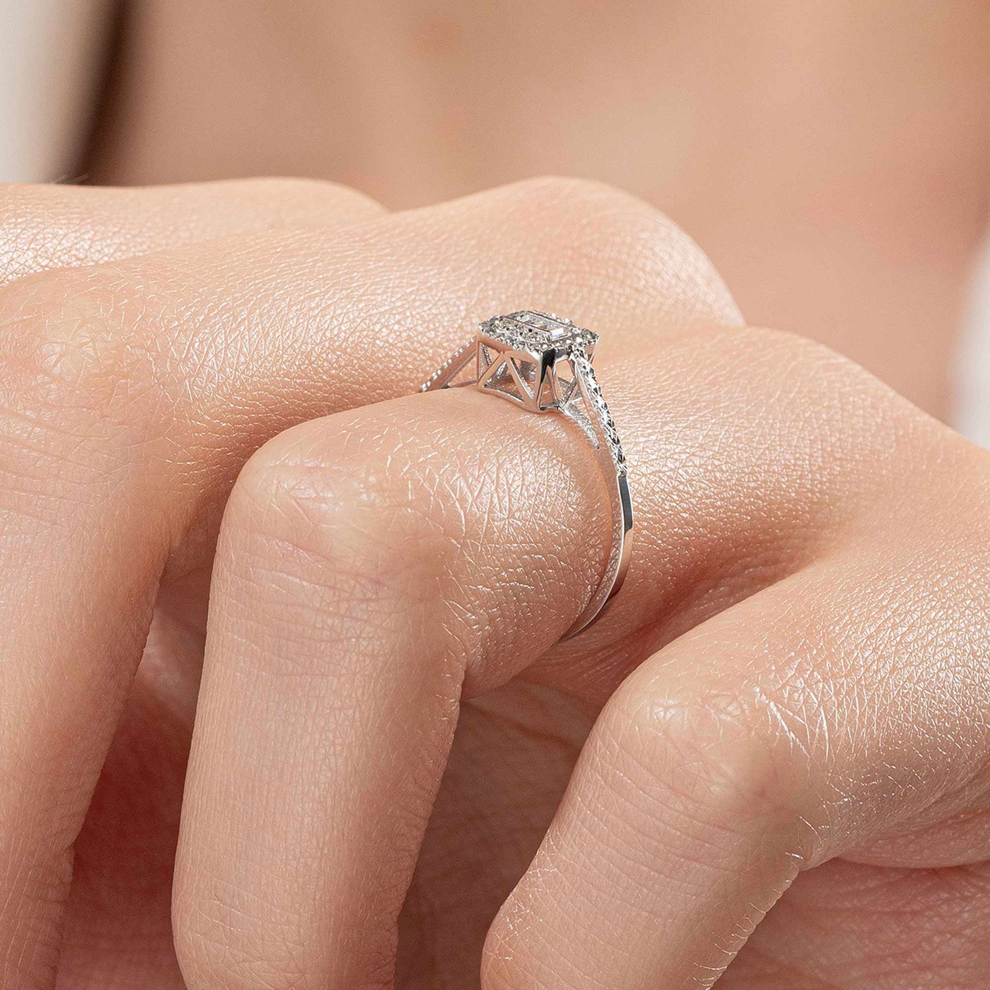 Gelince Haber VerÜründe G renk SI berraklığında baget ve yuvarlak kesim pırlanta taşlar kullanılmaktadır. Parlaklığı ve netliğiyle dikkat çeken bu taşlar, zarif bir görünüm sunar. Altın ağırlığı, seçilen yüzük ölçüsüne göre farklılık gösterebilir.