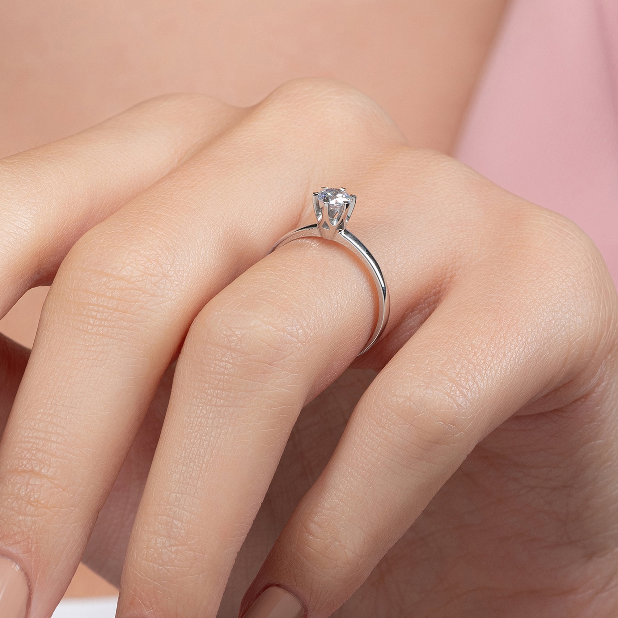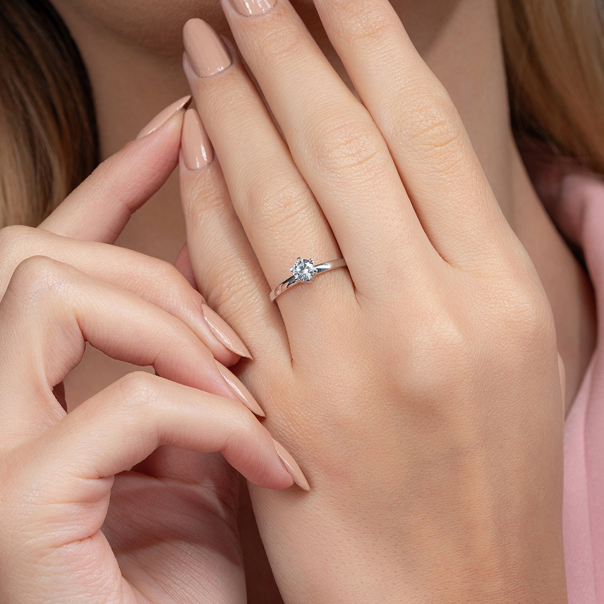 Üründe G renk SI2 berraklığında yuvarlak kesim pırlanta taşlar kullanılmaktadır. Parlaklığı ve netliğiyle dikkat çeken bu taşlar, zarif bir görünüm sunar. Altın ağırlığı, seçilen yüzük ölçüsüne göre farklılık gösterebilir.