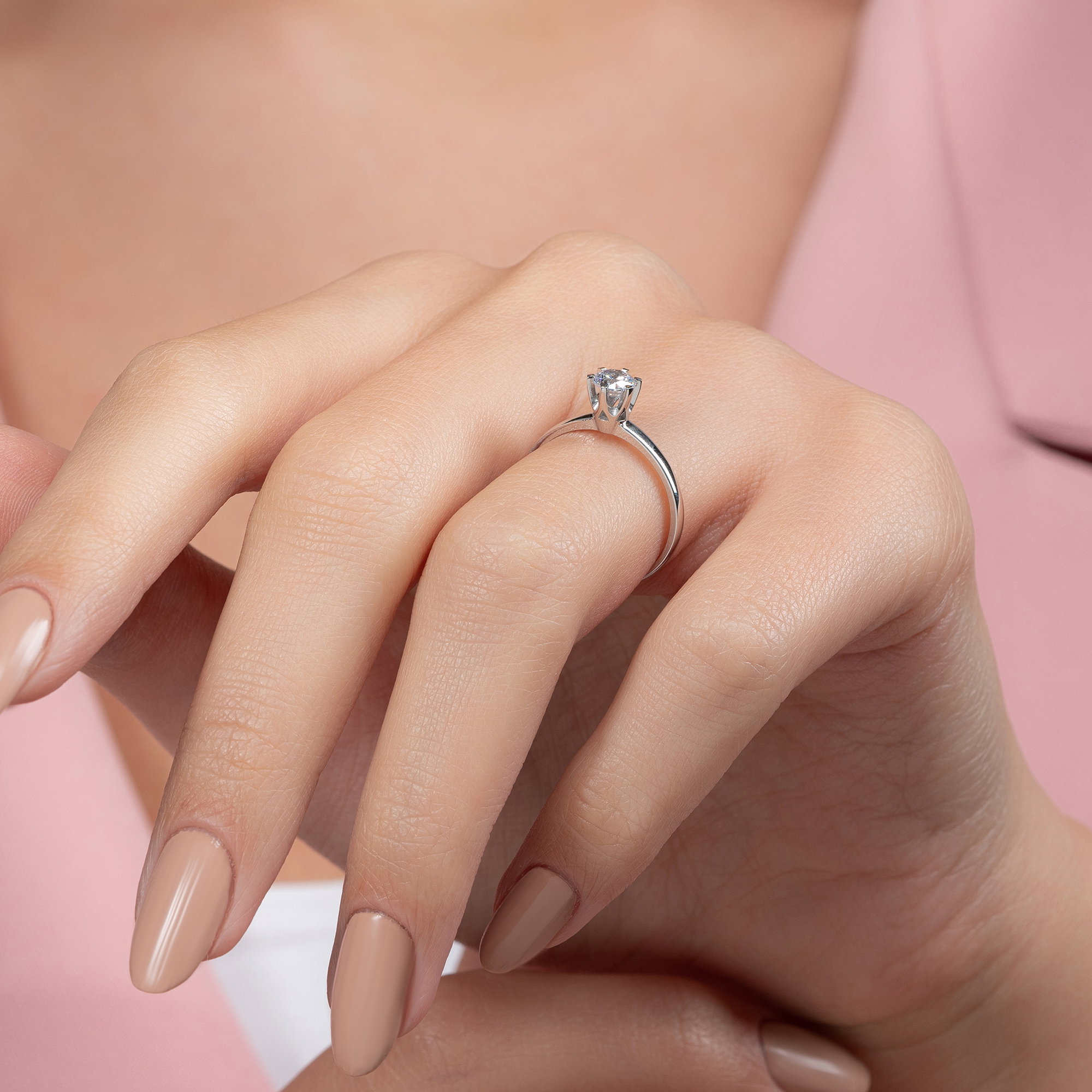 Gelince Haber VerG Renk 0,40 Karat HRD Sertifikalı Tektaş Pırlanta Yüzük - Yaklaşık 2,30gr. 14 Ayar Beyaz Altın
