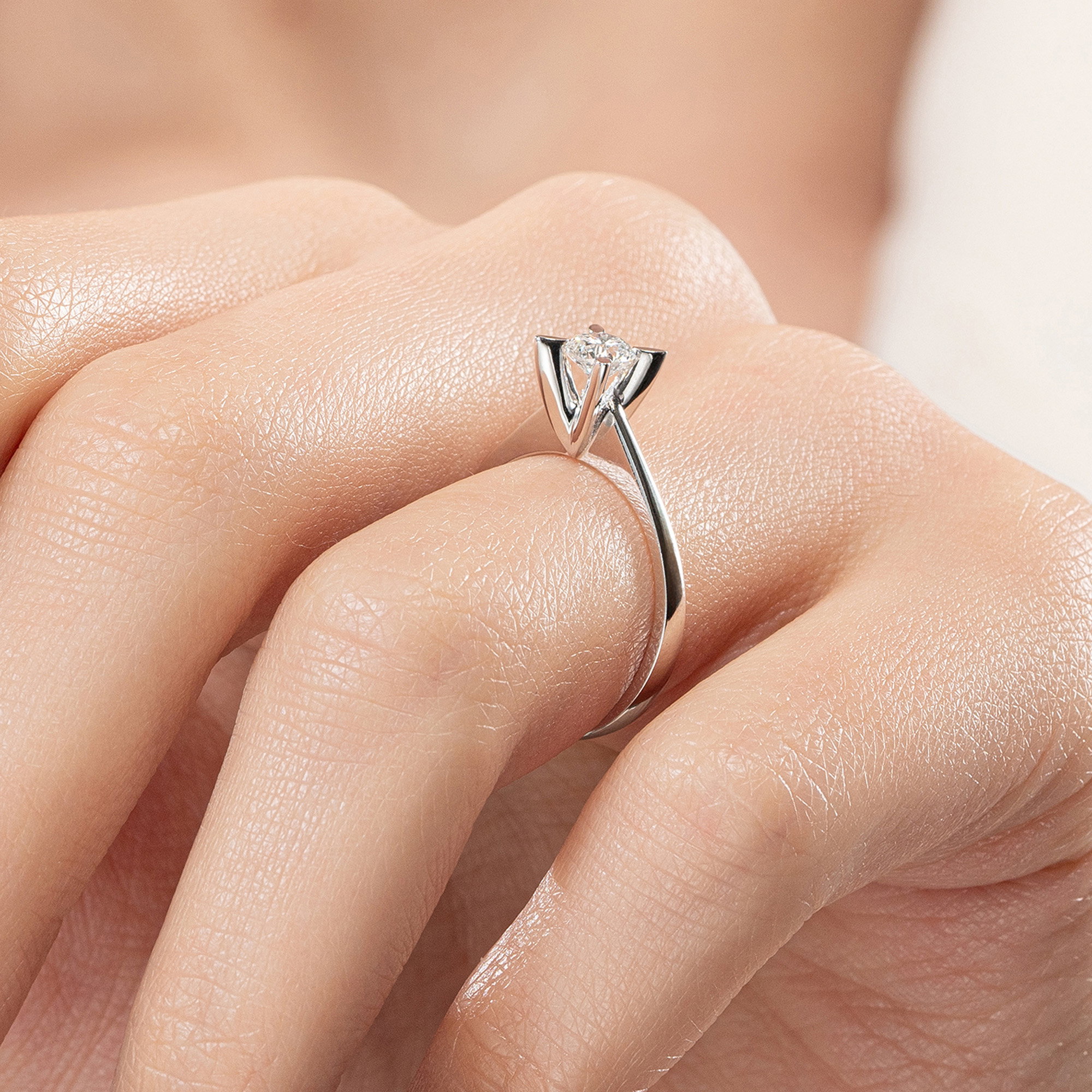 Gelince Haber VerG Renk 0,40 Karat HRD Sertifikalı Tektaş Pırlanta Yüzük - Yaklaşık 2,45gr. 14 Ayar Beyaz Altın