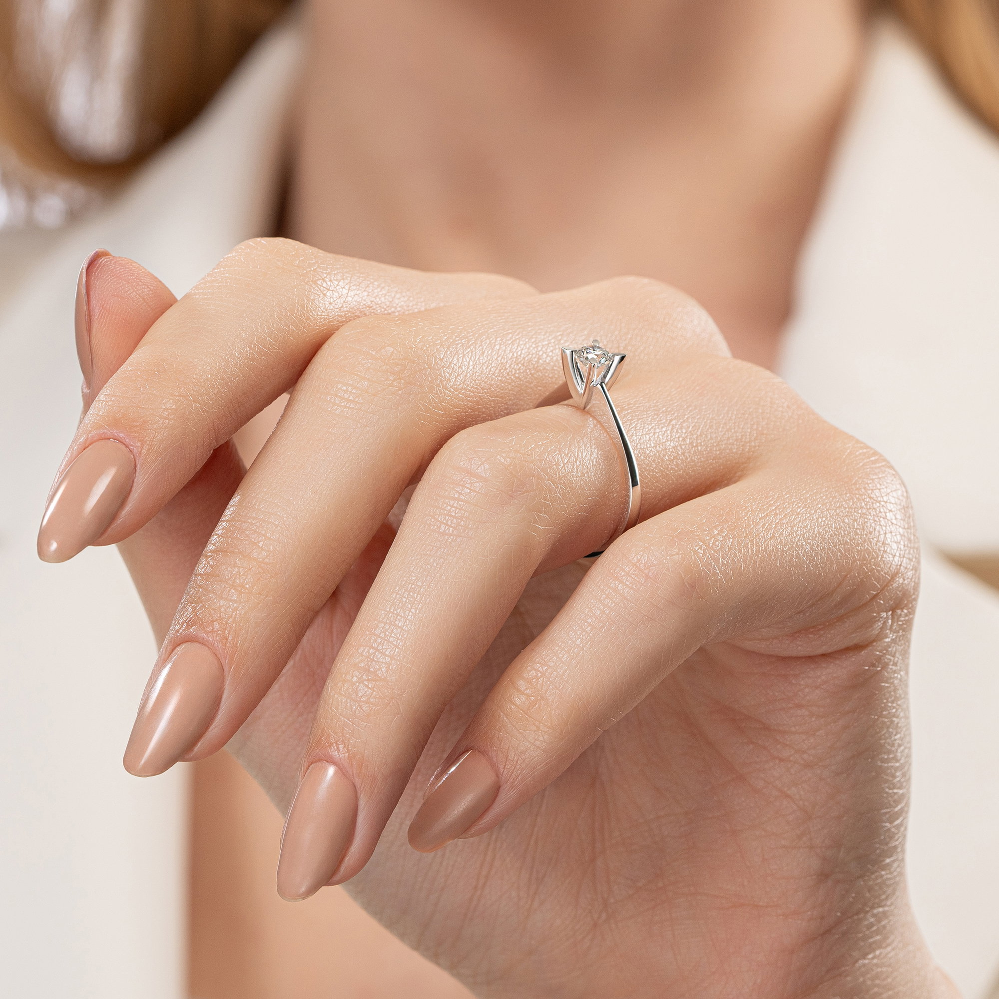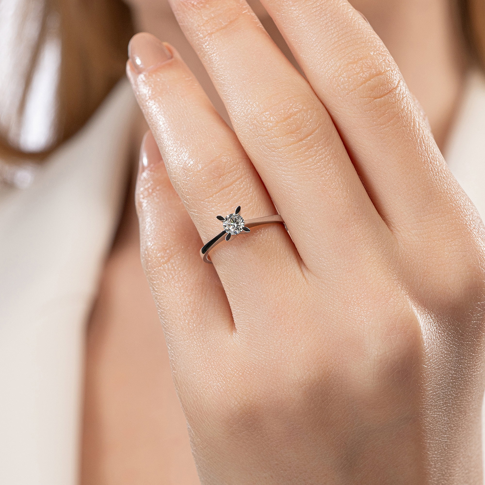 Üründe G renk SI2 berraklığında yuvarlak kesim pırlanta taşlar kullanılmaktadır. Parlaklığı ve netliğiyle dikkat çeken bu taşlar, zarif bir görünüm sunar. Altın ağırlığı, seçilen yüzük ölçüsüne göre farklılık gösterebilir.