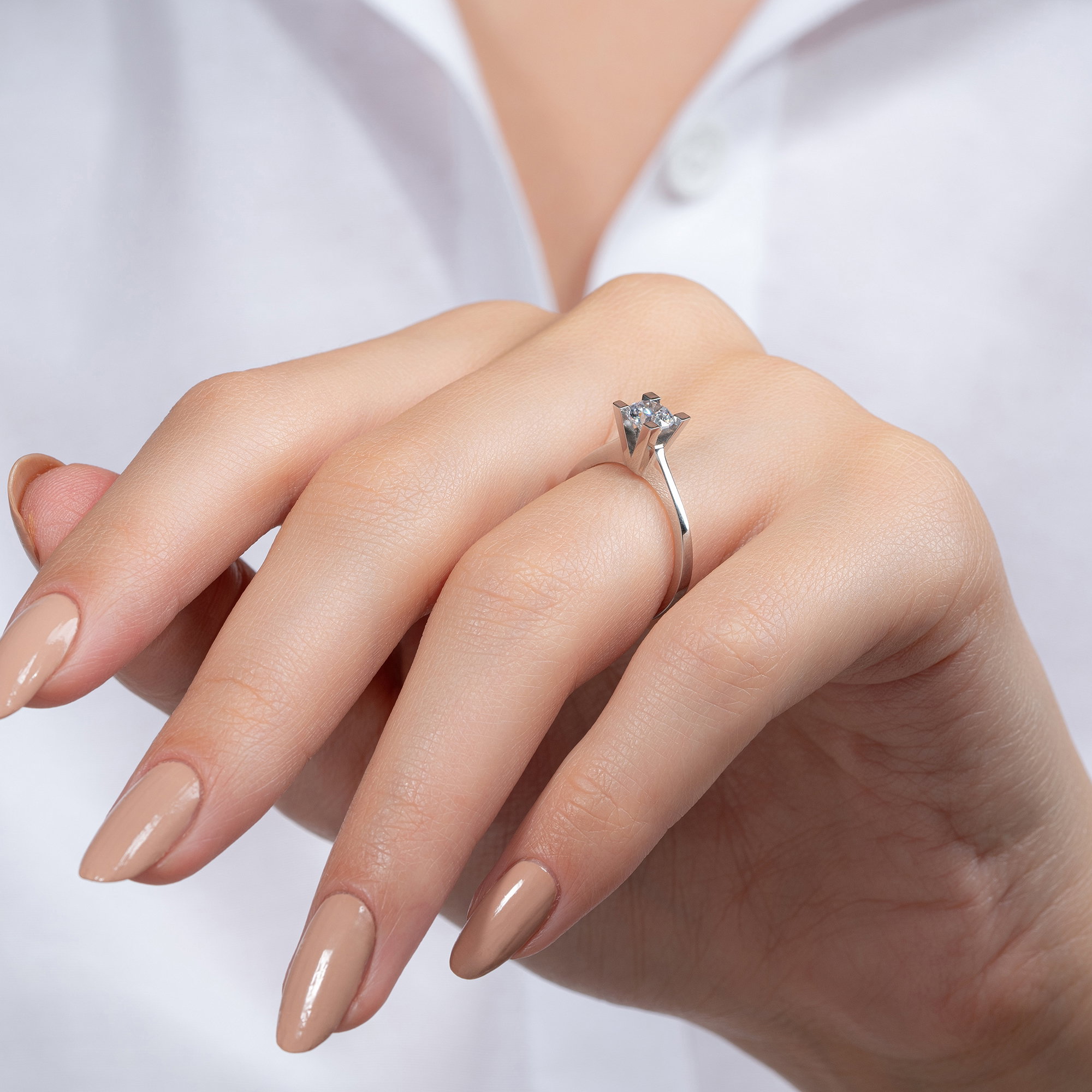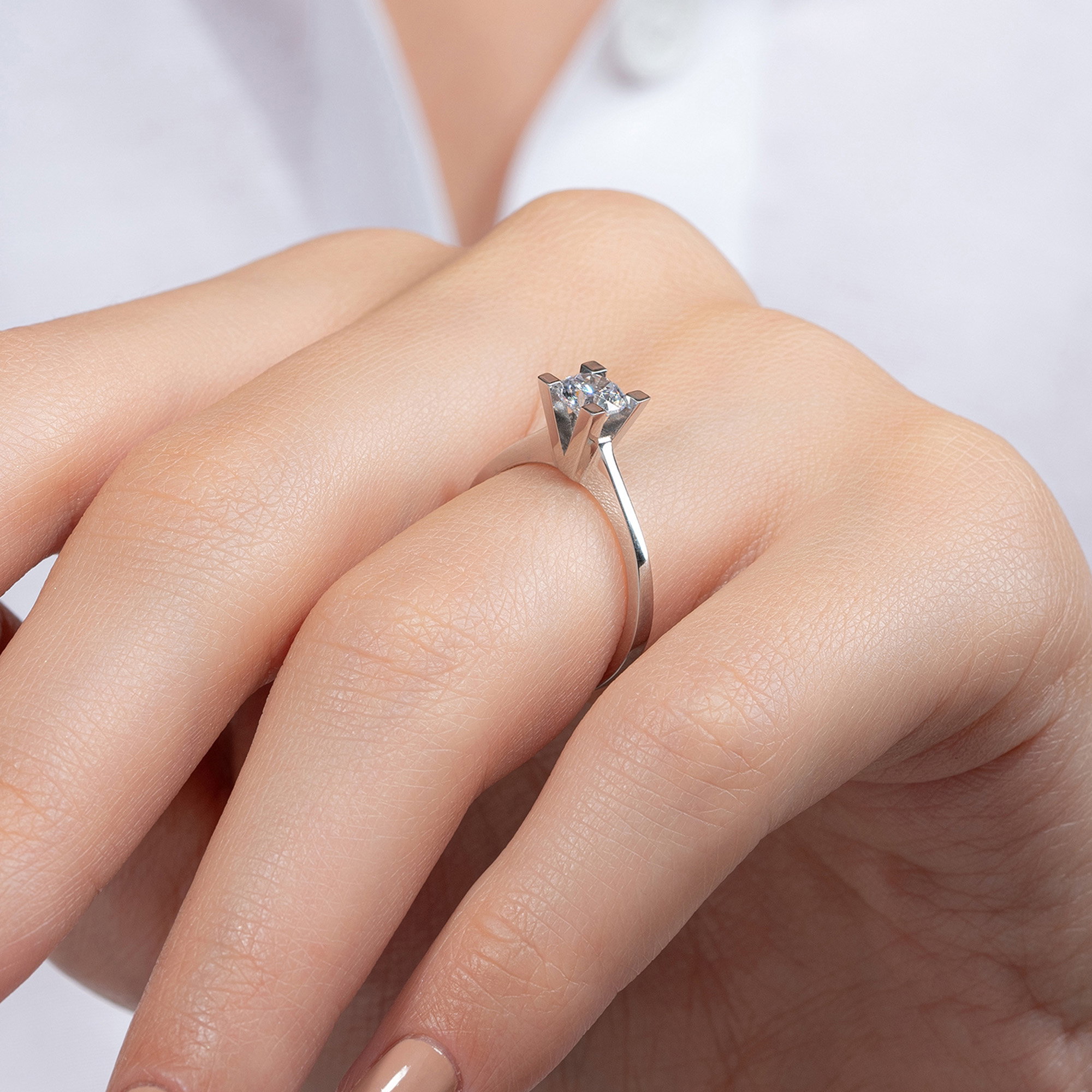Üründe G renk SI2 berraklığında yuvarlak kesim pırlanta taşlar kullanılmaktadır. Parlaklığı ve netliğiyle dikkat çeken bu taşlar, zarif bir görünüm sunar. Altın ağırlığı, seçilen yüzük ölçüsüne göre farklılık gösterebilir.