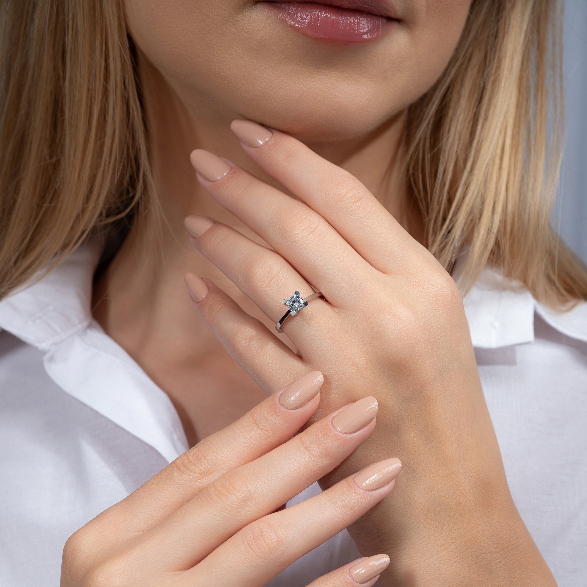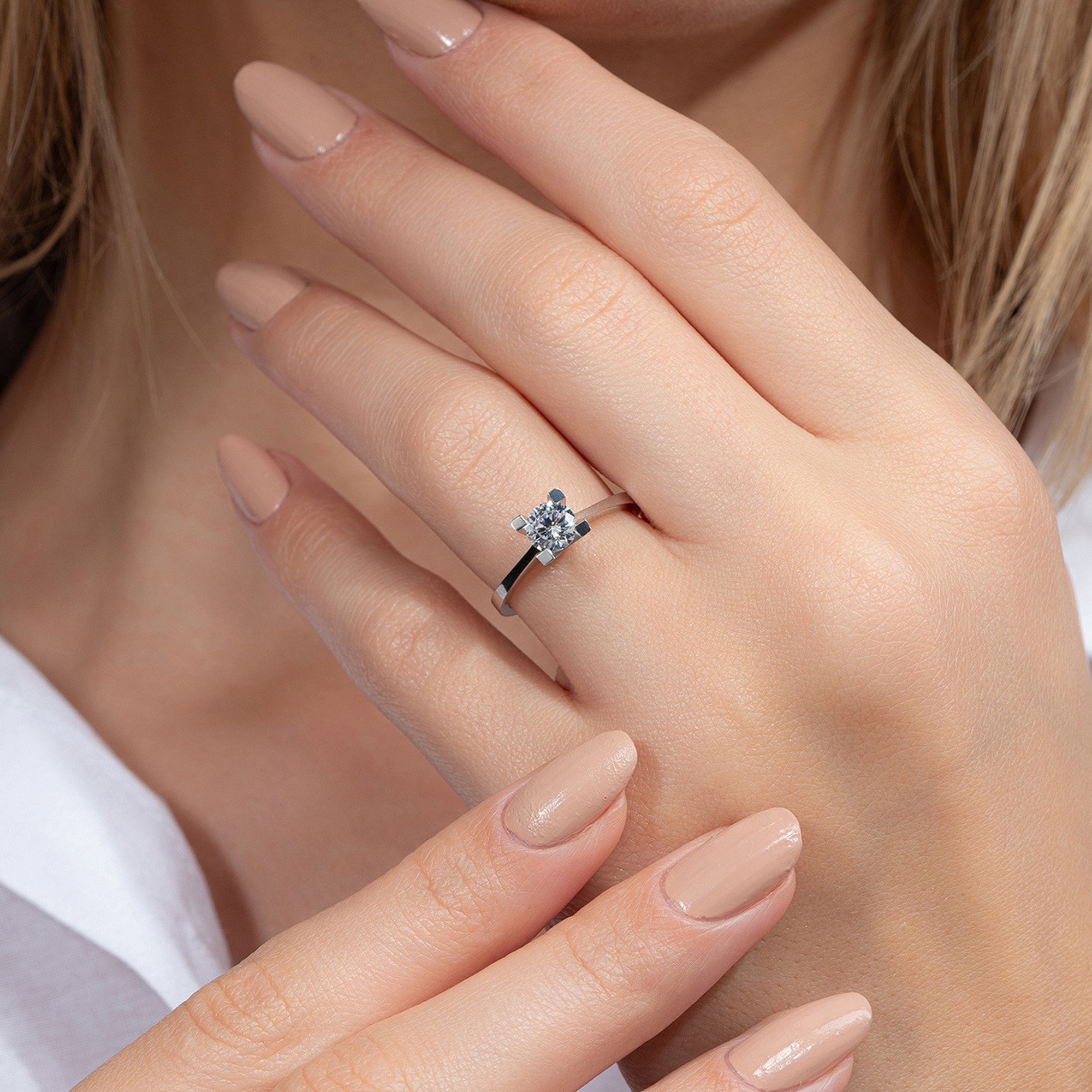 Üründe G renk SI2 berraklığında yuvarlak kesim pırlanta taşlar kullanılmaktadır. Parlaklığı ve netliğiyle dikkat çeken bu taşlar, zarif bir görünüm sunar. Altın ağırlığı, seçilen yüzük ölçüsüne göre farklılık gösterebilir.