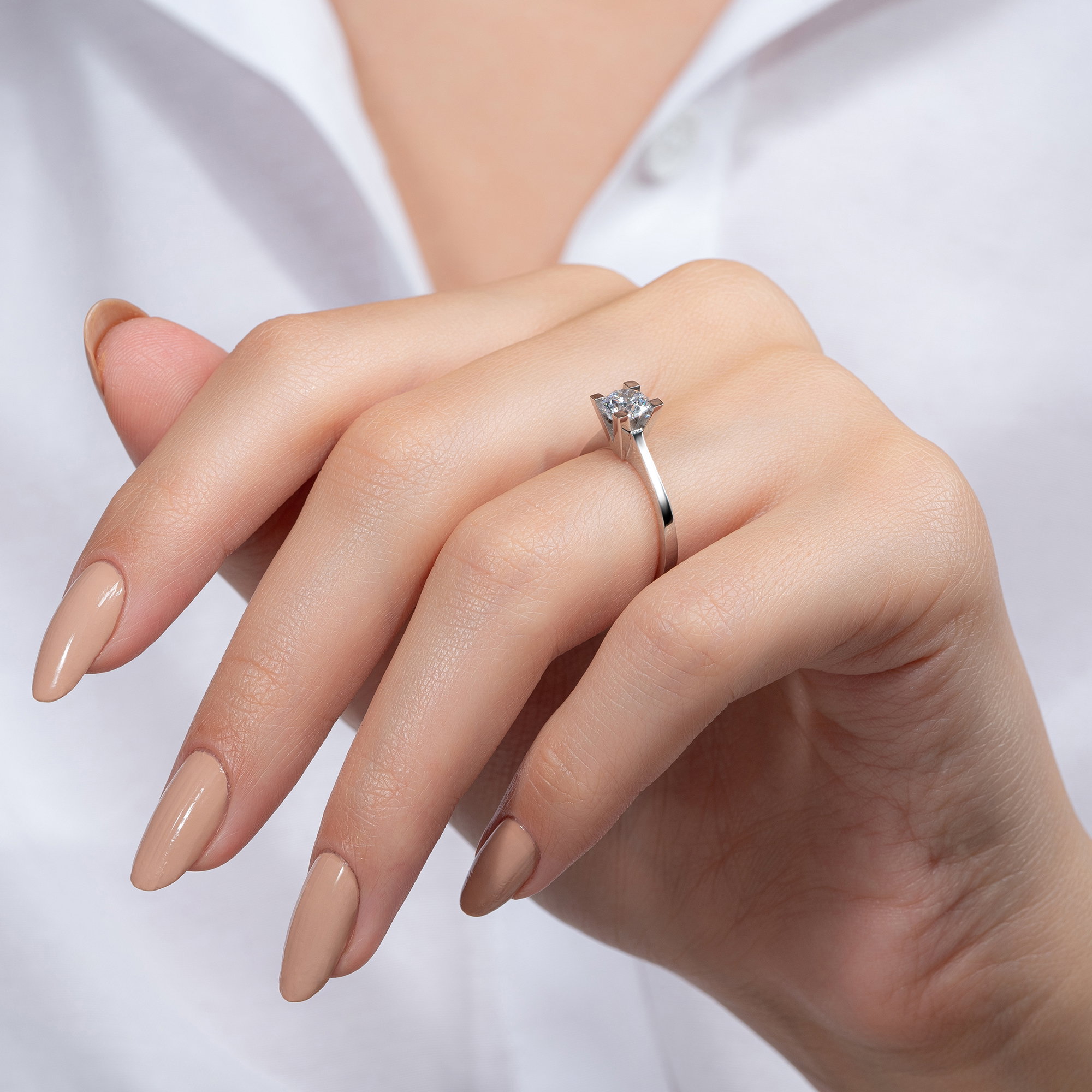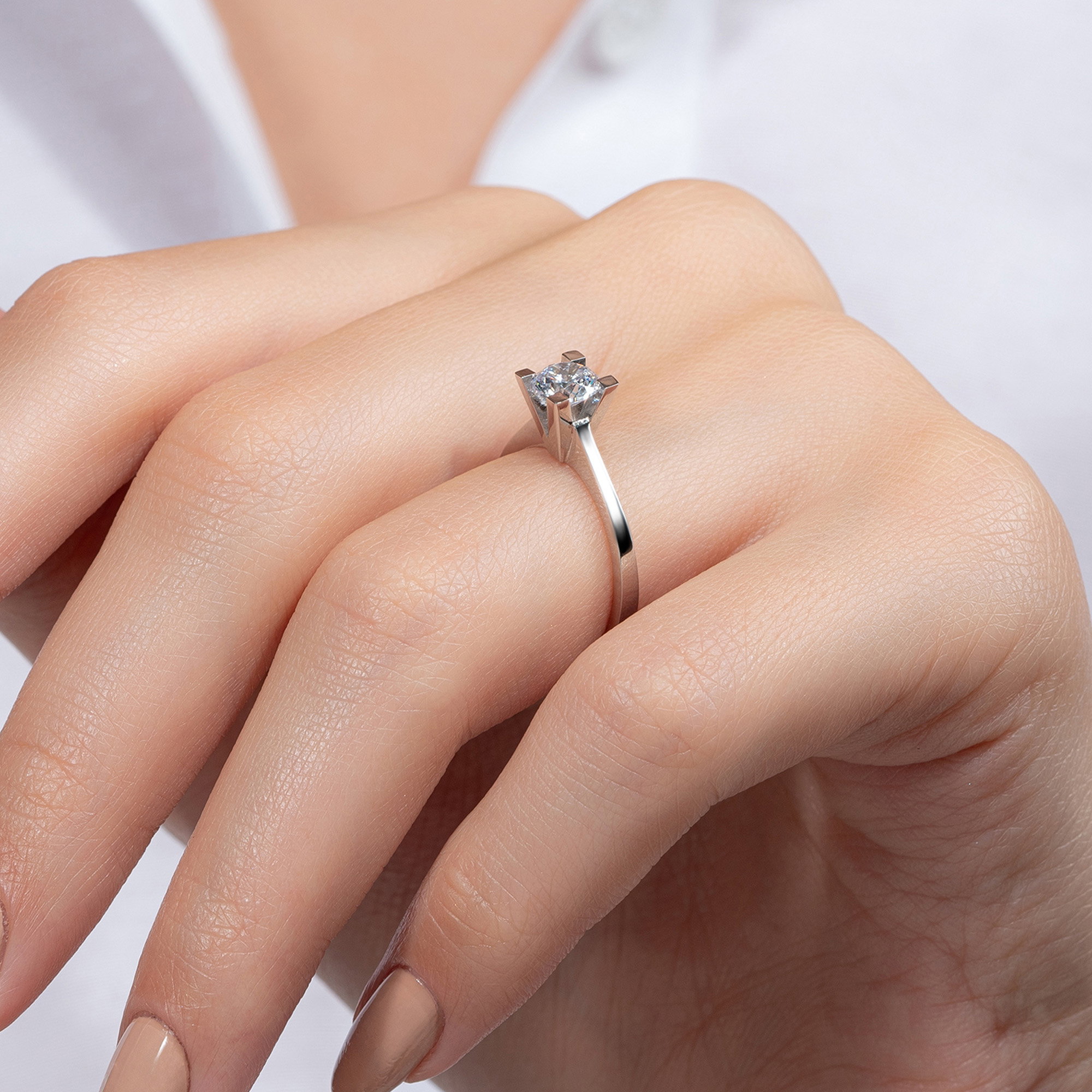 Gelince Haber VerG Renk 0,70 Karat HRD Sertifikalı Tektaş Pırlanta Yüzük - Yaklaşık 2,36gr. 14 Ayar Beyaz Altın