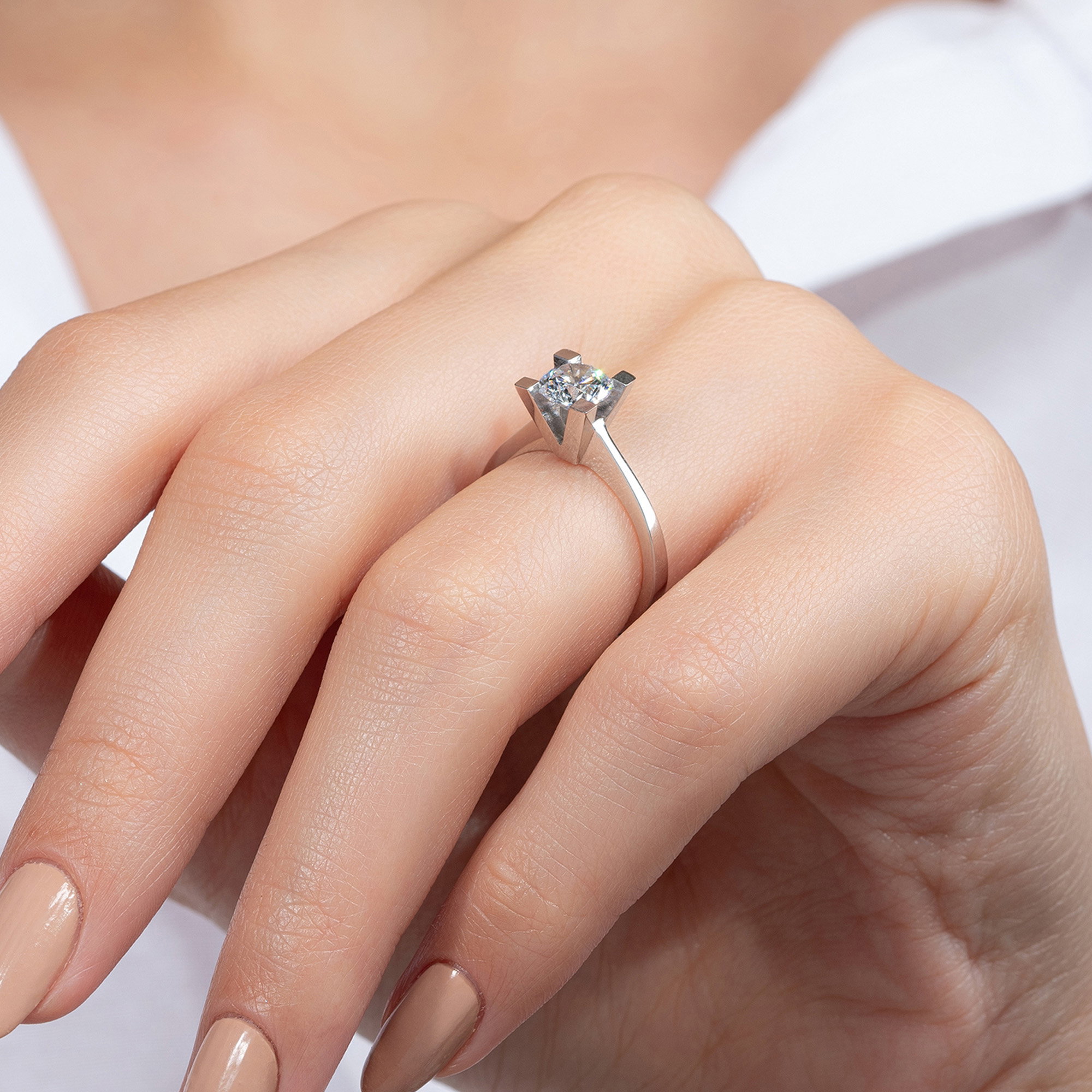Üründe G renk SI2 berraklığında yuvarlak kesim pırlanta taşlar kullanılmaktadır. Parlaklığı ve netliğiyle dikkat çeken bu taşlar, zarif bir görünüm sunar. Altın ağırlığı, seçilen yüzük ölçüsüne göre farklılık gösterebilir.