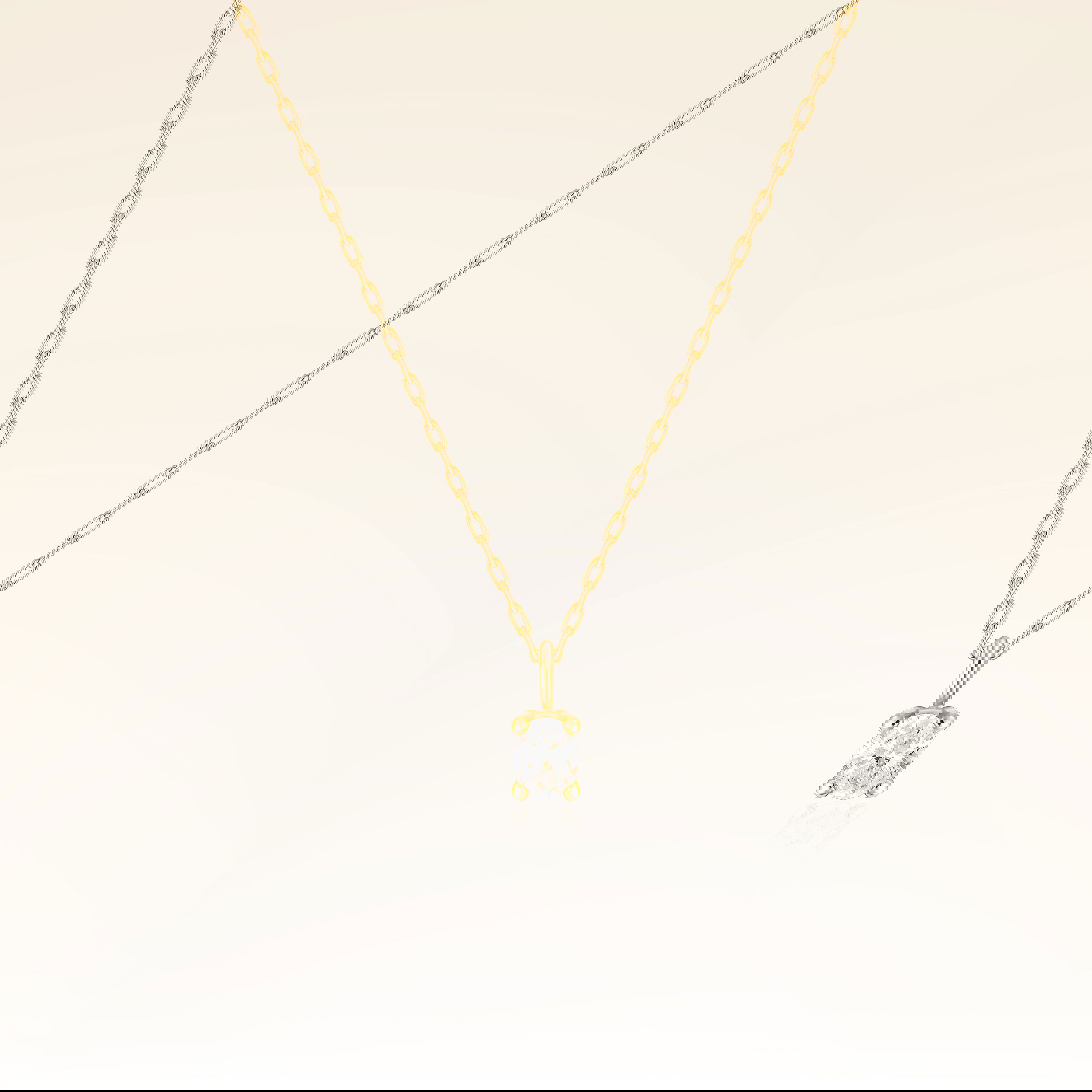 0,15 Karat Oval Kesim Pırlanta Minimal Kolye - Yaklaşık 0,81gr. 14 Ayar Sarı Altın