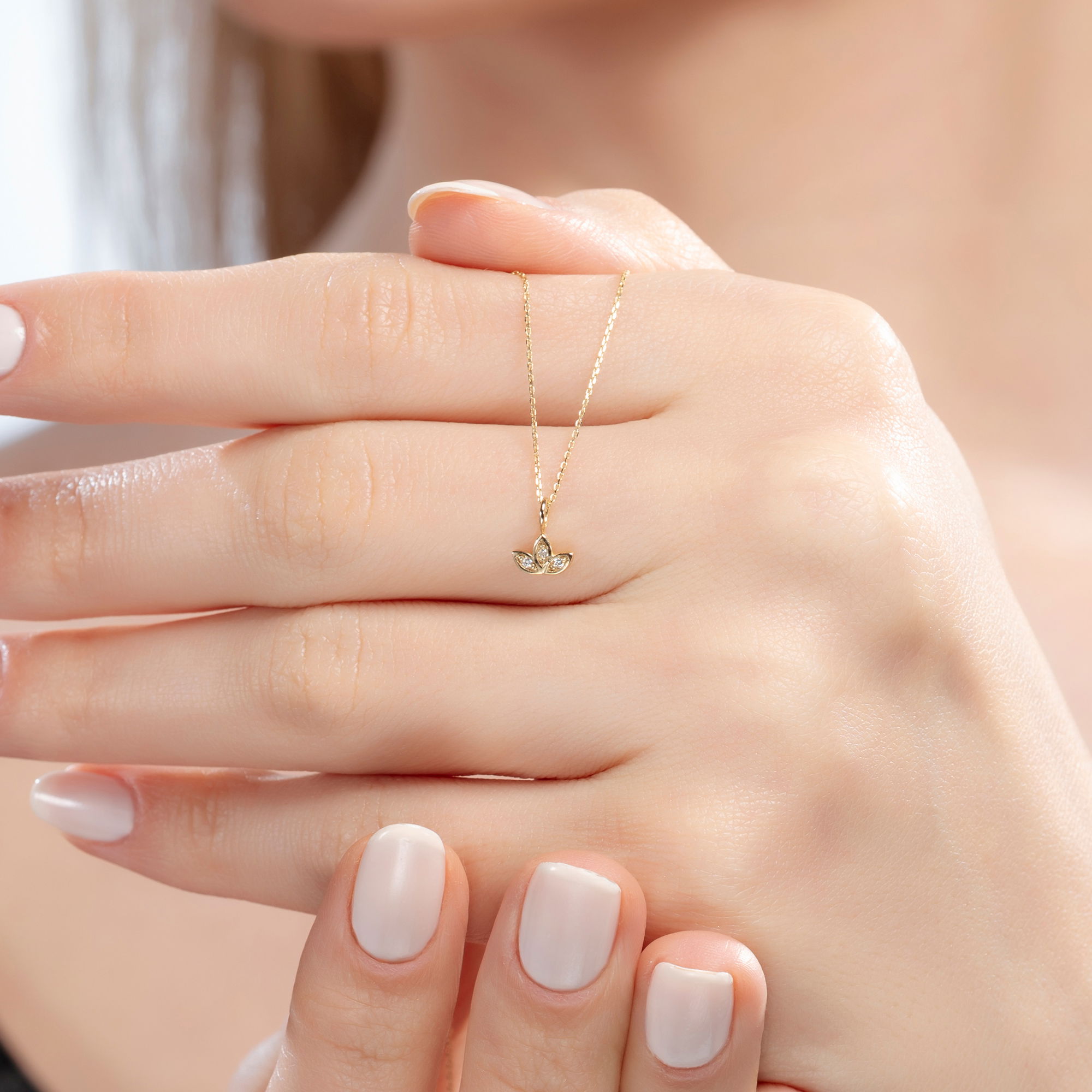 0,01 Karat Pırlanta Lotus Kolye - Yaklaşık 0,75gr. 14 Ayar Sarı Altın