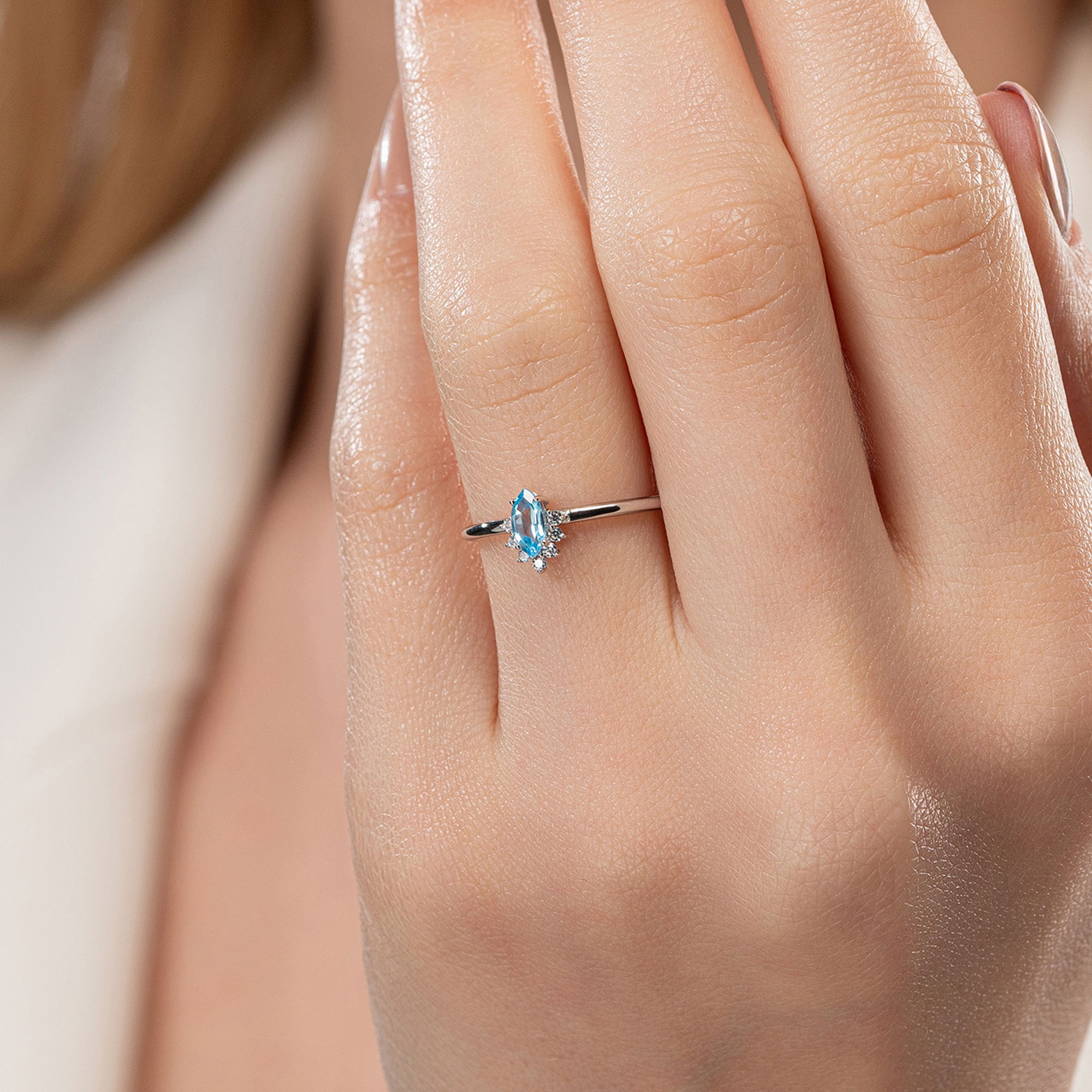 Gelince Haber VerÜründe G renk SI berraklığında markiz ve yuvarlak kesim topaz ve pırlanta taşlar kullanılmaktadır. Parlaklığı ve netliğiyle dikkat çeken bu taşlar, zarif bir görünüm sunar. Altın ağırlığı, seçilen yüzük ölçüsüne göre farklılık gösterebilir.